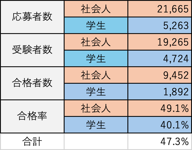 今回の記事では、合格率とその内訳について簡単に紹介しました。